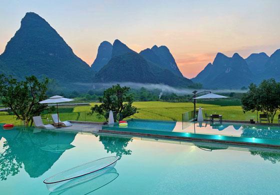 のんびりと草をはむ水牛、田んぼで働く農夫、そして緑あふれるカルスト丘陵に抱かれるように佇む古い家々——これらが陽朔の変わらぬ美しい風景を織りなしています。田園地帯では、のどかな田園地帯や静かな村々を自転車で巡ったり、遇龍河(ヨウロンガ)で竹筏(バンブーラフト)下りを楽しんだりすることができます。