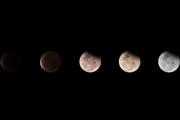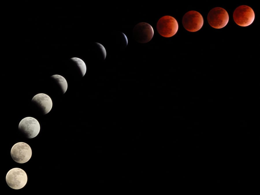 皆既月食の間、月は完全に見えないわけではありません。なぜなら、太陽光は地球の薄い大気を通過するときに屈折して月を照らすことで、赤くみえるのです。本影を通る月の進路とその時の地球の大気条件は、皆既月食によって光度が異なるようです。