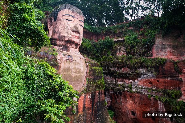四川省の省都成都の南164kmのところに位置する楽山の、岷江と大渡河の合流点に像高71mを誇る楽山大仏があります。弥勒菩薩を象(かたど)って彫られた巨大な磨崖仏(石仏)であり、石窟寺院の一種 近代以前に造られたものでは世界最大?最長の石仏像です。顔は100畳分、岩山を掘り、90年かけて造られた。たくさん人は目にした時の驚きが強烈だったことは確かでした。大仏は船で素晴らしさを感じます。