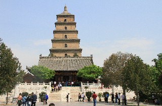市の南4キロにある。唐の三代目の高宗李治が皇太子のとき、生母文徳皇后の冥福を祈り648年に建てた慈恩寺の境内に立つ塔で、西安のシンボルである。当時の規模はかなり大きかったが、唐代末期に戦乱のため焼き払われ、現存するのは当時の十分の一に過ぎない。